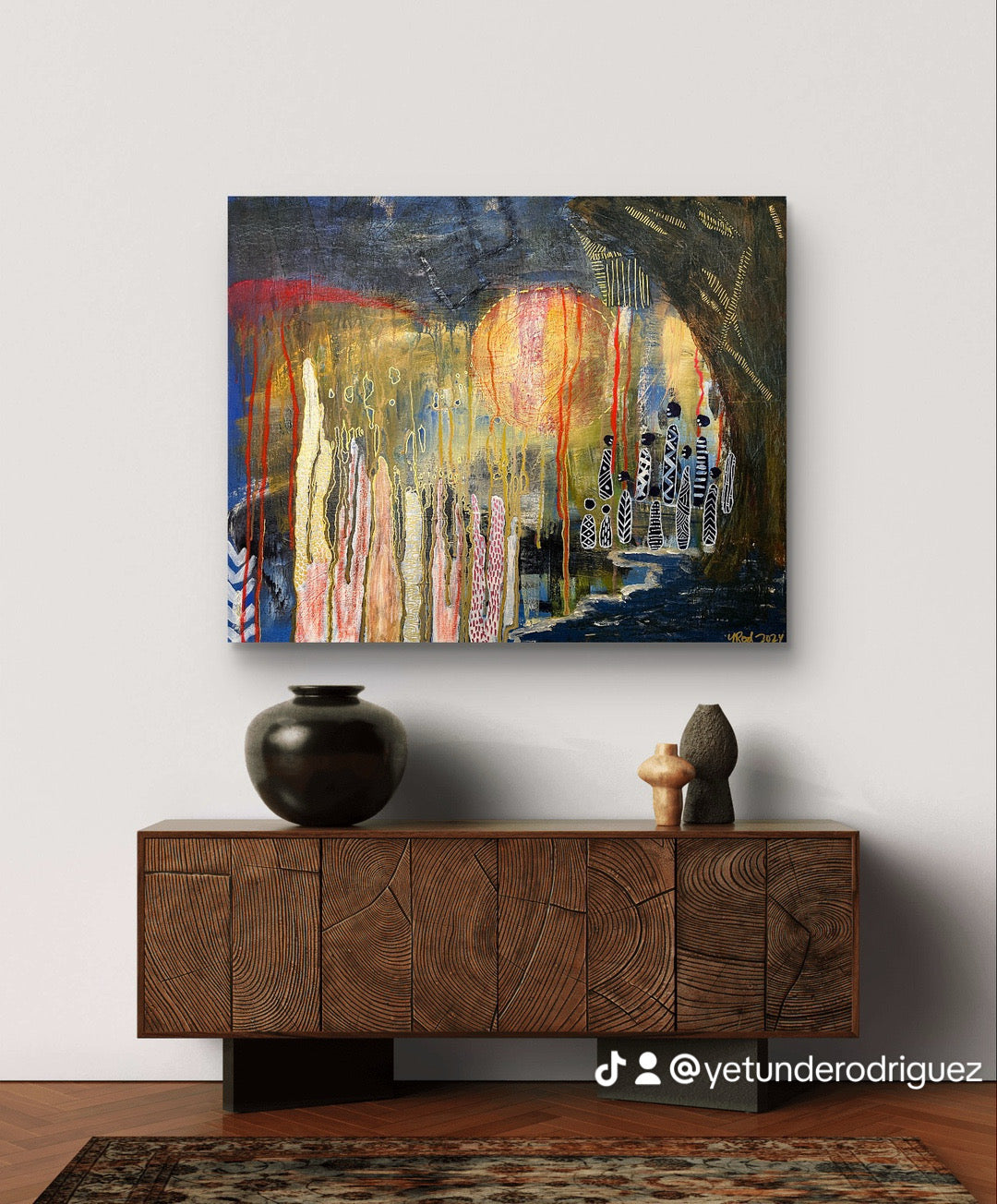 This is first in a series of paintings that explores some of Yetunde’s recurring dreams. The best ones pop in on you in a snippet, brought on in an instant, only to disappear just as quickly, as you try to hold on to it.